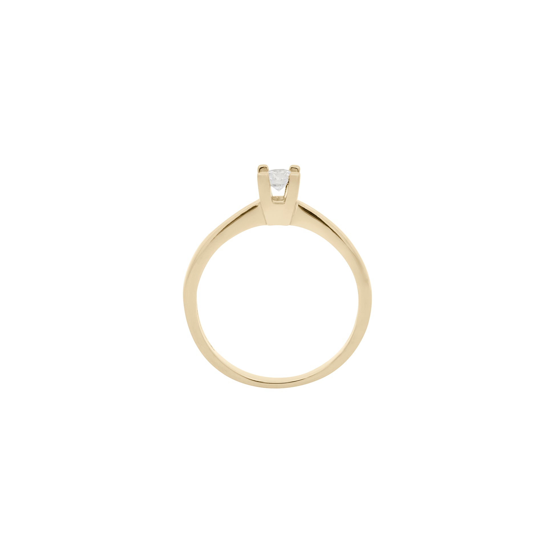 Un anillo solitario en oro amarillo de 14k, engastado con un diamante central de 0.20 ct.