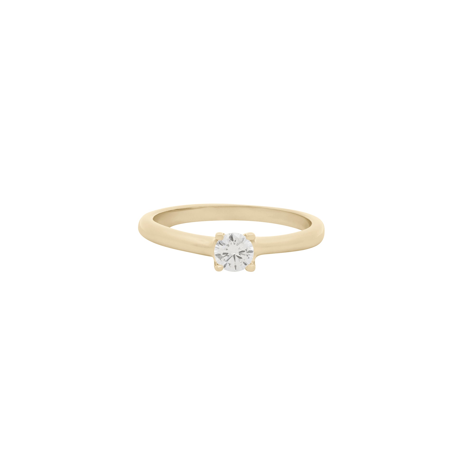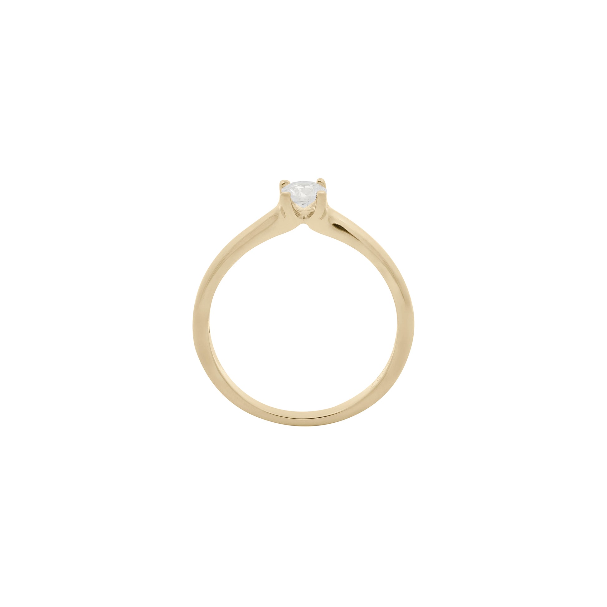 Anillo solitario en oro amarillo de 14k que resalta con un diamante central de 0.25 ct. Su diseño elegante y radiante evoca la intensidad de una llama dorada, convirtiéndose en un símbolo eterno de amor y luz.