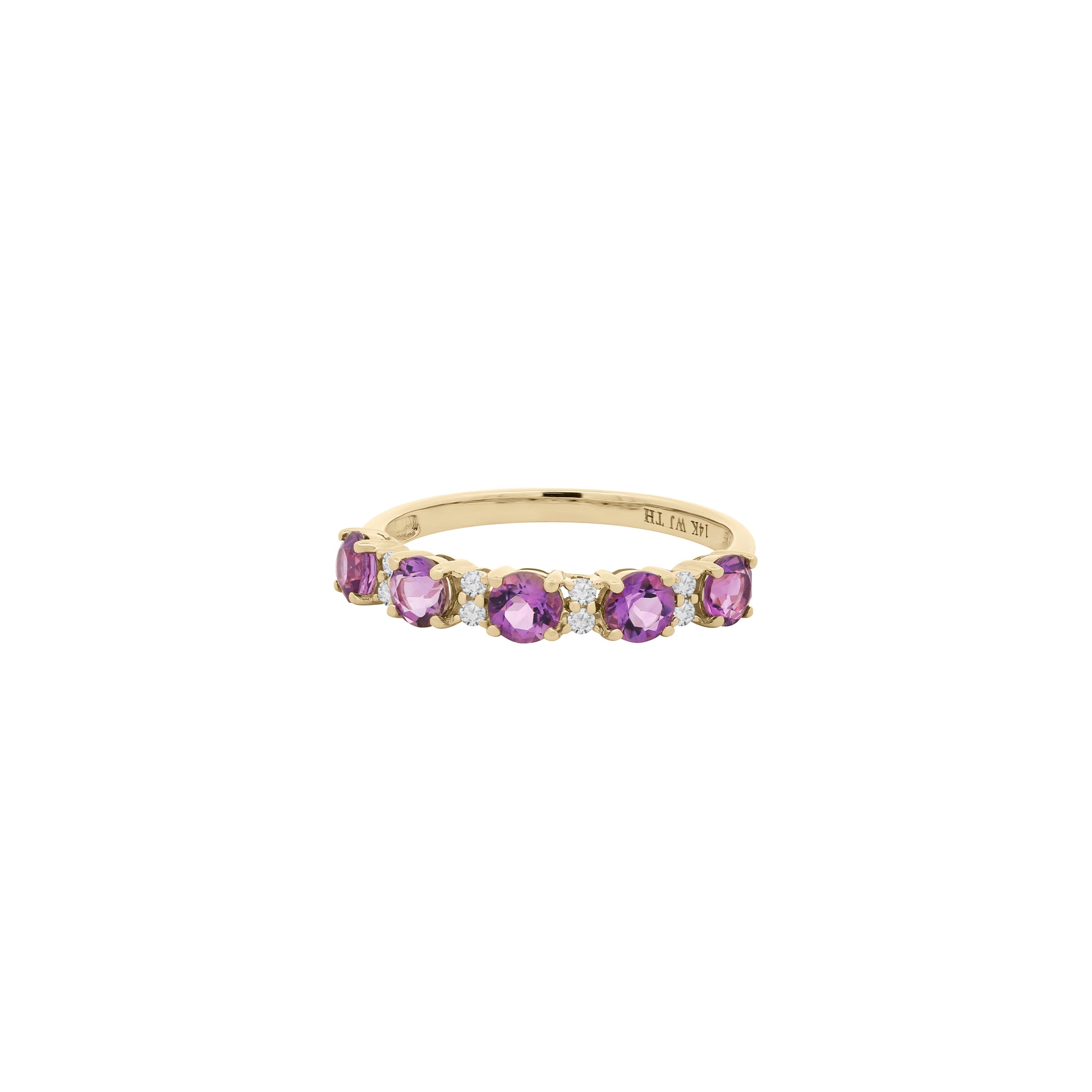 Añade un toque de color y elegancia con esta churumbela de oro amarillo 14K, engastada con amatistas de 0.09 ct y delicados diamantes de 0.08 ct. Su diseño armonioso realza el brillo de cada piedra, ofreciendo un look sofisticado y lleno de vida, ideal para cualquier ocasión.