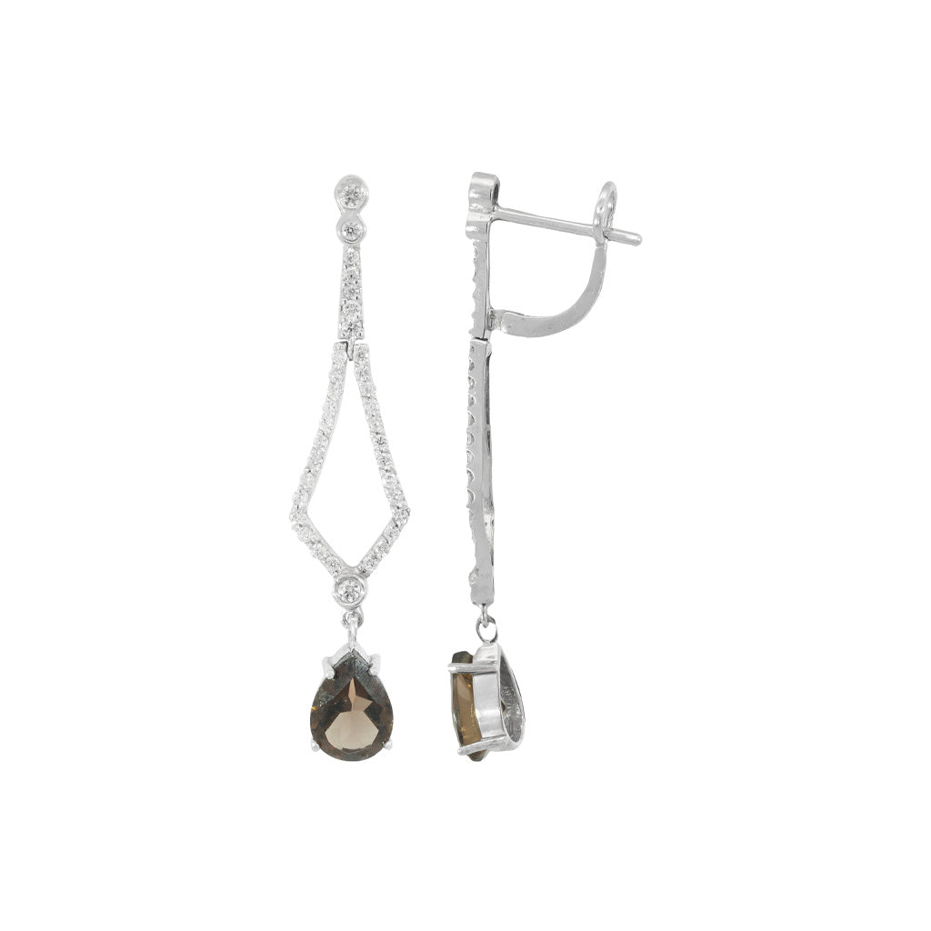 Aretes de oro blanco 14k con cuarzos ahumados de 1.85 ct y diamantes adicionales de 0.46 ct. ARS046-CH.